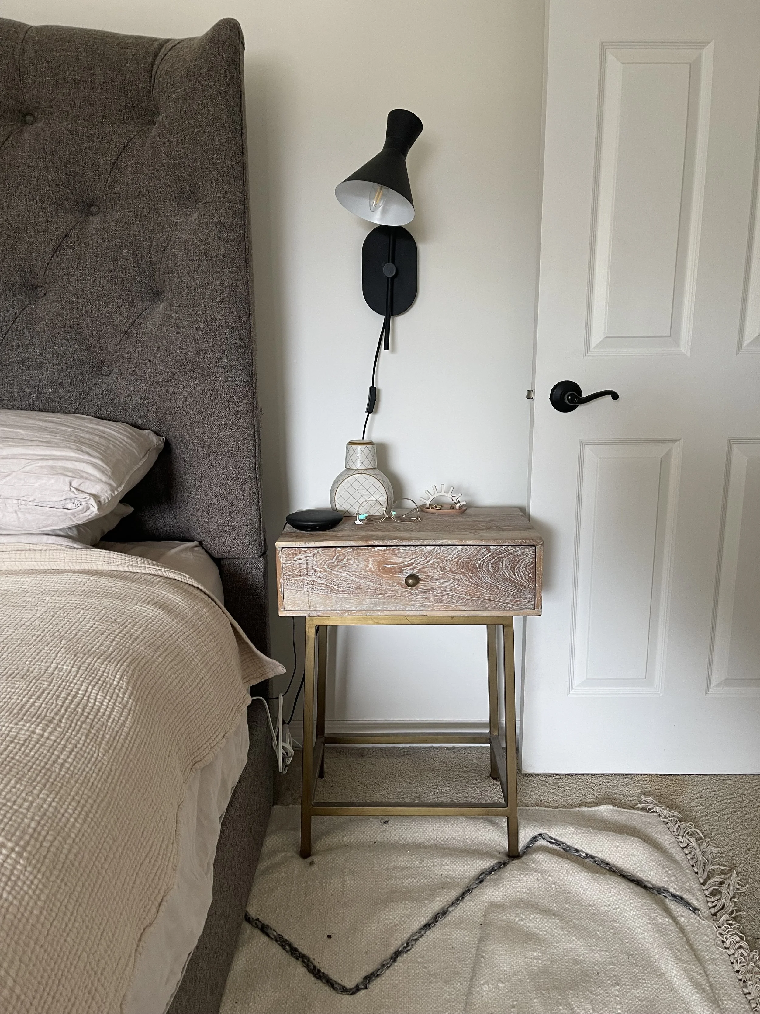 In the spirit of being both environmentally and budget conscious, in week three I’ll be giving our existing nightstands a glow up. I love the bones and style of them, I just want to reimagine the colour and maybe add a detail to the drawer fronts. Stay tuned!