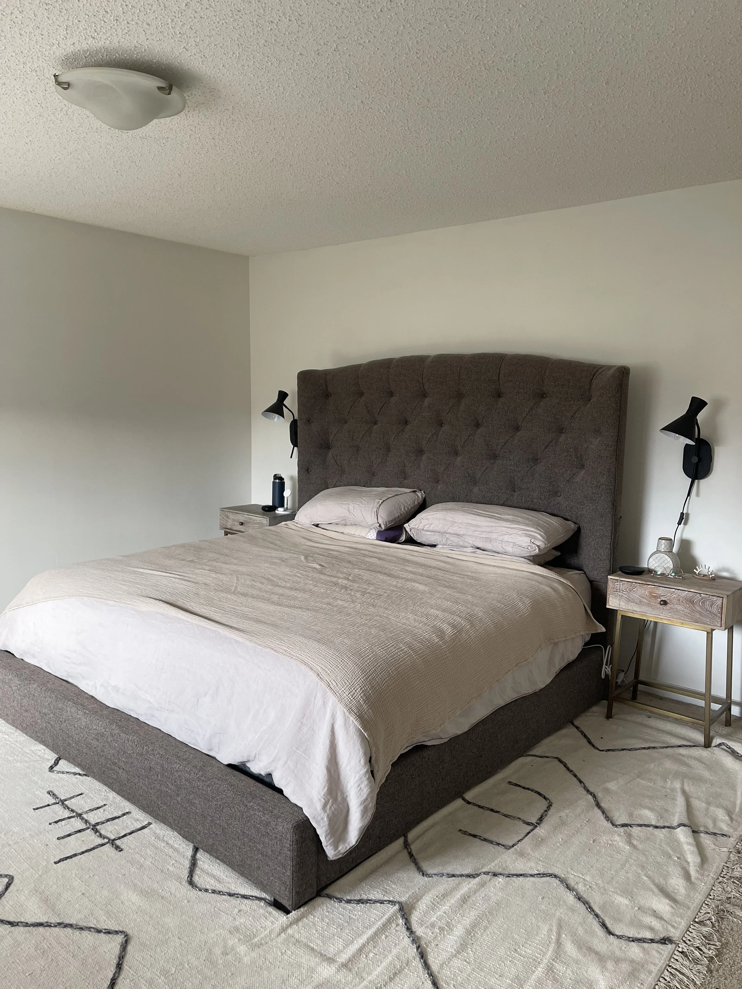 To kick it all off, I’ve put together, and am now as I write this sharing, my plan for the design direction and tasks for this ORC project. There’s nothing inherently wrong with our bedroom space (per say) but it feels a bit flat and the furniture is a bit of a mashup of pieces we brought from our previous house that don’t work as well in the current space. The vibe I’m going for is an organic, modern with a hint of wabi sabi that I think will bring some much needed texture and dimension to the space.